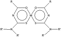 Figure 1: Structural model for [dialkylacylthioureatoM(II)] complex; M=Ni, Cu, Zn; R= -C6H5, -CnH2n+1; R'= -CnH2n+1.